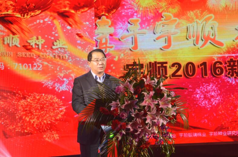 喜鵲登枝迎新歲,金猴起舞報福音。今天,我們相逢天域時代大酒店,其樂融融,歡聚一堂,共同慶祝2016新年的到來!值此之際,我謹代表安徽宇順種業(yè)開發(fā)有限公司并以創(chuàng)始人的身份向前來參加團拜會的各位來賓、各位宇順家人致以新年最美好的祝福和最誠摯的問候!特別向仍堅守在新疆、海南一線的各位專家、宇順家人致以最崇高的敬意、最親切的感謝!