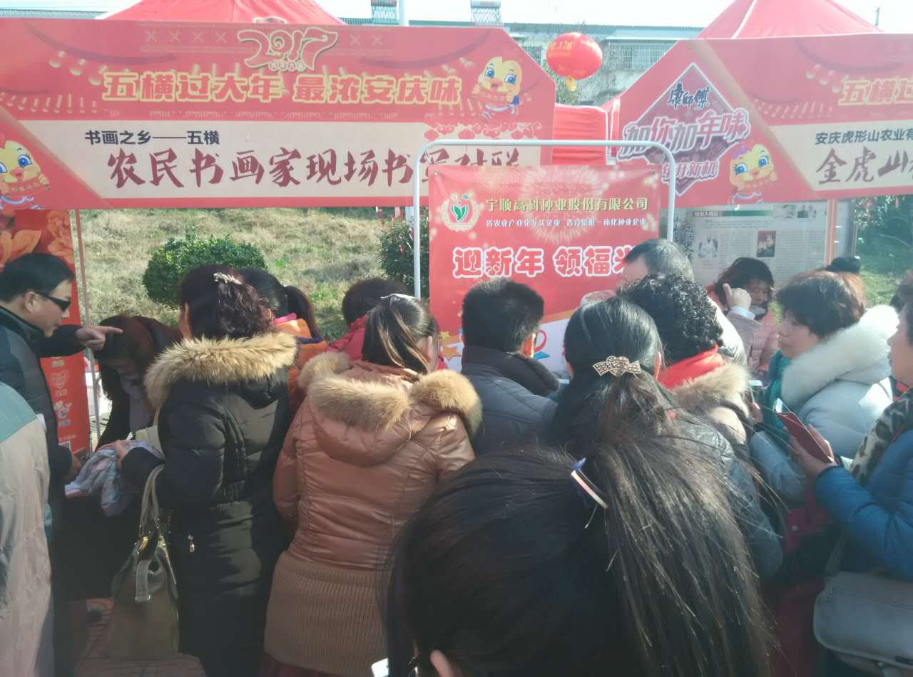 2017115日,應(yīng)宜秀區(qū)五橫鄉(xiāng)政府邀請,宇順高科種業(yè)攜自主研培的小紅稻新品種——嬉子紅米,參加了由五橫鄉(xiāng)政府舉辦的主題為“五橫過大年  最濃安慶味”年貨節(jié)活動;顒蝇F(xiàn)場人山人海、精彩紛呈、年味十足。在我公司開展的“迎新年 領(lǐng)福米”派贈活動中,派發(fā)了300份嬉子紅新年福米,活動現(xiàn)場大家都表達(dá)了要在辭舊迎新之際,和家人圍坐在一起吃紅米飯、納新年之福!