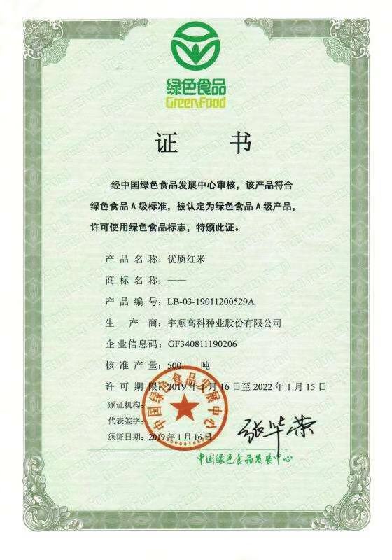 我司紅米系列產(chǎn)品榮獲綠色食品證書