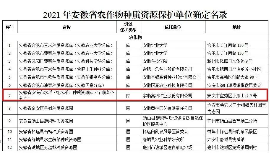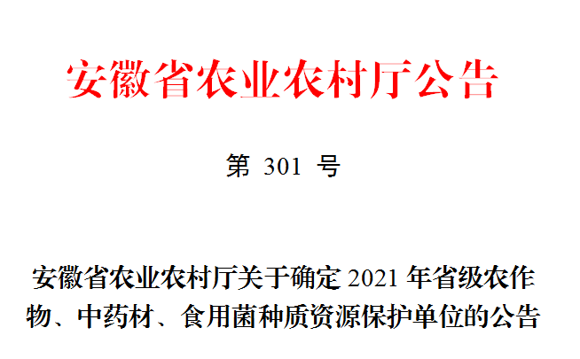 2021年安徽省農(nóng)作物種質(zhì)資源保護單位確定名錄
